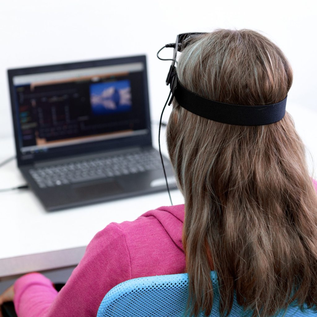 Utilizamos a tecnologia de espectroscopia de infravermelho próximo (NIRS), que é um equipamento posicionado na cabeça do(a) paciente e ligado a software de treinamento.
